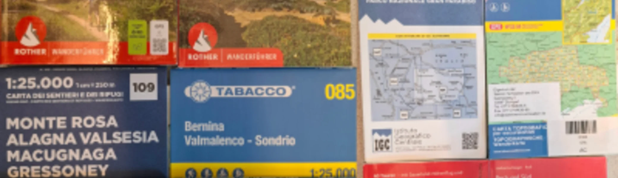 Wir haben wieder neue Karten und Führer angeschafft. Die neuen Karten sind meistens im Maßstab 1:25000. Diese Gebiete werden mit den neuen Karten abgedeckt:
