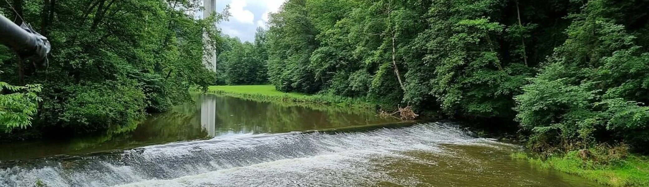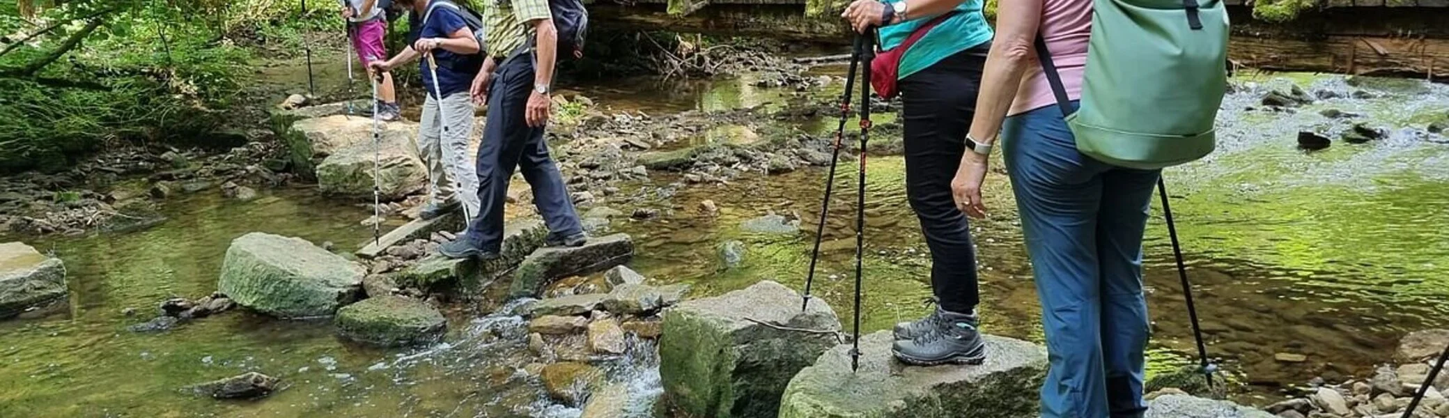 Auf engen Pfaden ging es kurz vor dem Neidenfelser Steinbruch hinauf auf die Höhe Neidenfels. Hier hatte man eine gute Sicht auf die Autobahnbrücke. Leider hörte man auch den Lärm der Autos. Wir wanderten von der Höhe steil bergab zur Gronach Richtung Hammerschmiede. Der Weg war sehr abenteuerlich, weil man über umgestürzte Bäume klettern und viermal die Gronach überqueren musste.