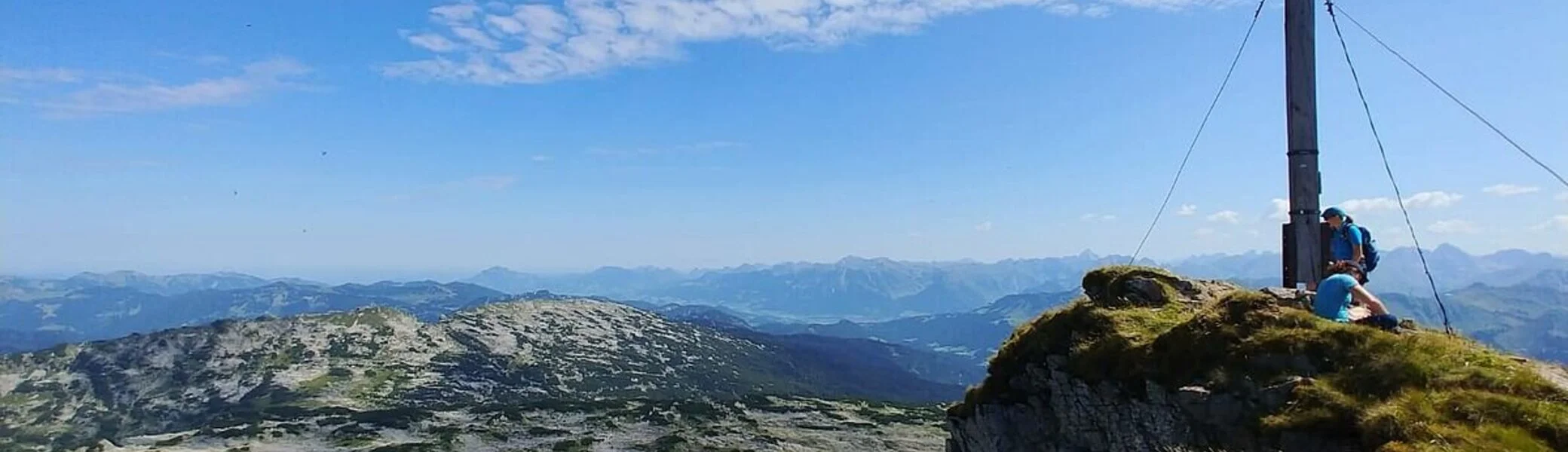 Nachdem dieser Abschnitt überwunden ist, geht es im gehbareren Gelände hoch zum Hohen Ifen. Von hier haben wir eine fantastische Rundumsicht hinüber zum Diedamskopf, zum Widderstein und der Kanzelwand. Im Abstieg wartet abermals eine versicherte Passage auf uns und damit einhergehend wieder ein beeindruckender Ausblick auf die Schotterfelder des Ifen. Ungesichert geht es sodann weiter am Hang entlang hinüber zur Bergstation der Ifenbahn. Hier ist Vorsicht geboten, da von oben Steinschlag droht. Diese Passage sollte also ohne Stehenzubleiben begangen werden. Von der Bergstation bietet sich die Möglichkeit noch einen weiteren Gipfel mitzunehmen. Etwa 90 zusätzliche Höhenmeter sind zu überwinden, um das Hahnenköpfle zu erreichen.