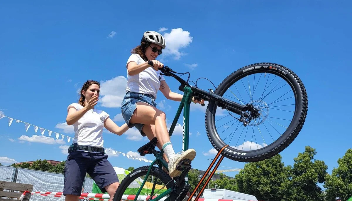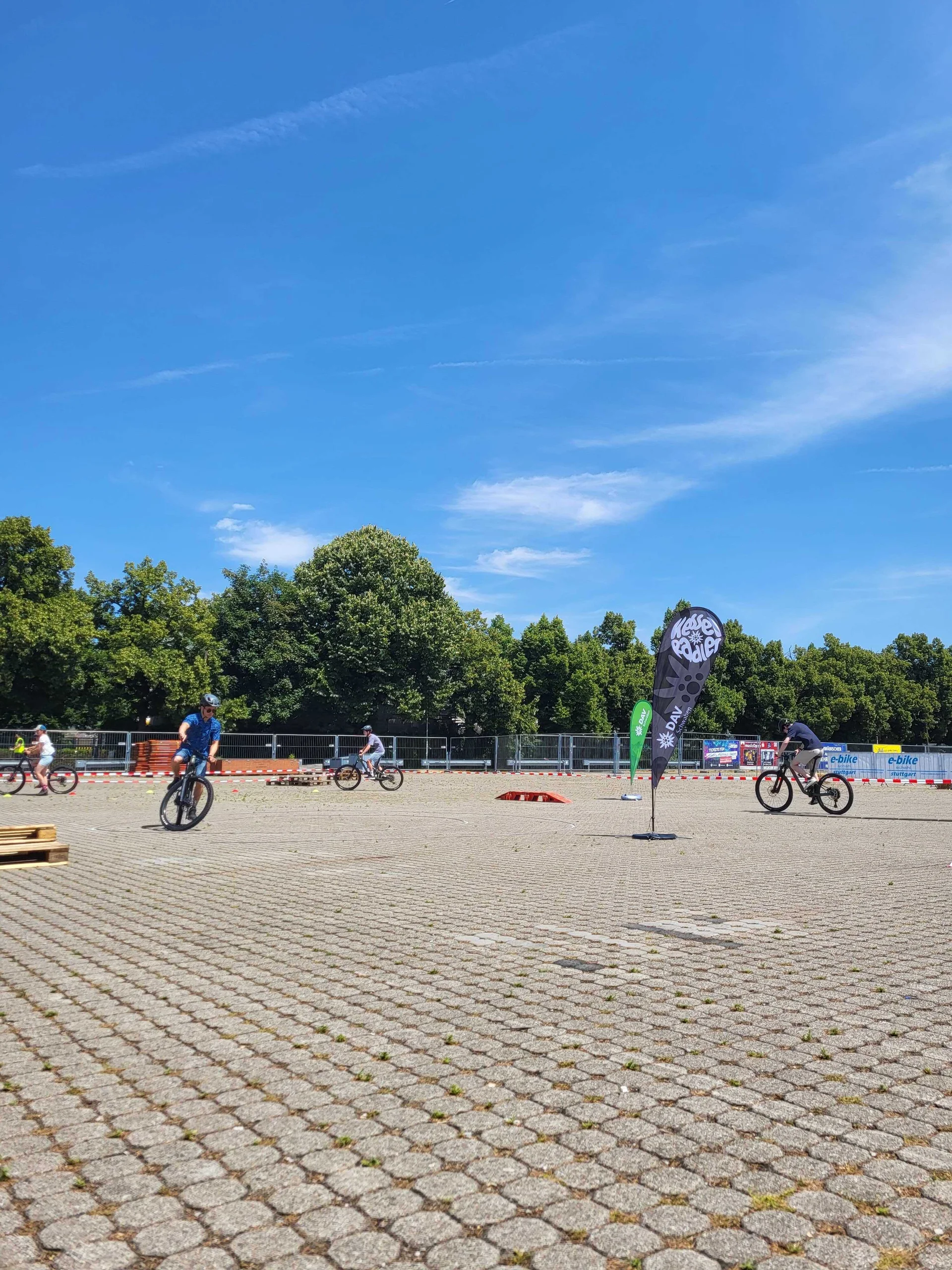 Ein echtes Highlight war unser Fahrtechnikparcours, auf dem sich die Festivalgäste selbst ausprobieren konnten. Dank der großzügigen Unterstützung von Merida, einem lokalen Mountainbike Hersteller aus Magstadt, der uns Testbikes zur Verfügung gestellt hat, konnten auch Einsteiger*innen direkt loslegen. Besonders beliebt war unser Manual Trainer – ein in ein Gestell eingespanntes Mountainbike, auf dem man gefahrlos die Technik des manuellen Vorderrad-Anhebens („Manual“) ausprobieren konnte. Hier wurde gelacht, geübt und sich gegenseitig angefeuert – genau so, wie wir es lieben.