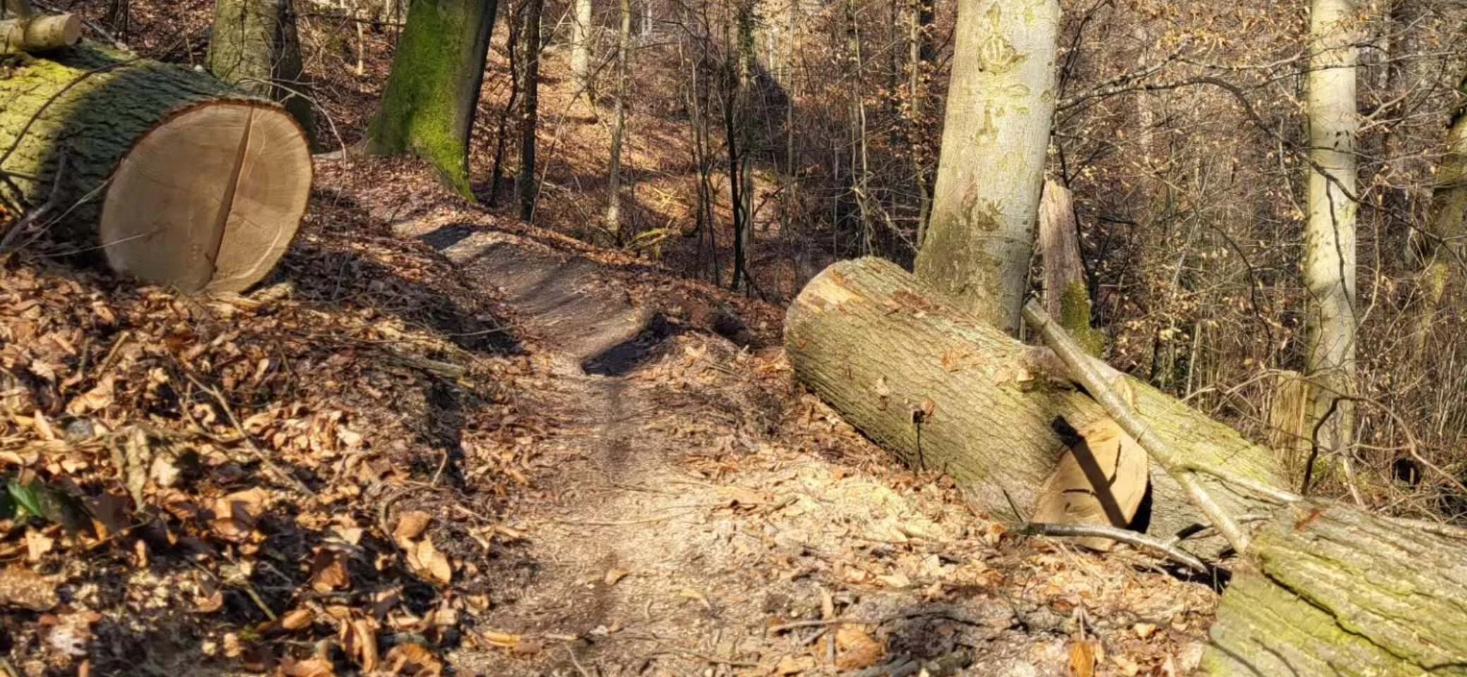 Jetzt ist uns positiv aufgefallen, dass Trails, die sich aktuell im Legalisierungs-Prozess befinden, nach der Holzernte vom Forst freigeräumt werden und teilweise sogar Aussparungen für die Durchfahrt gesägt wurden.