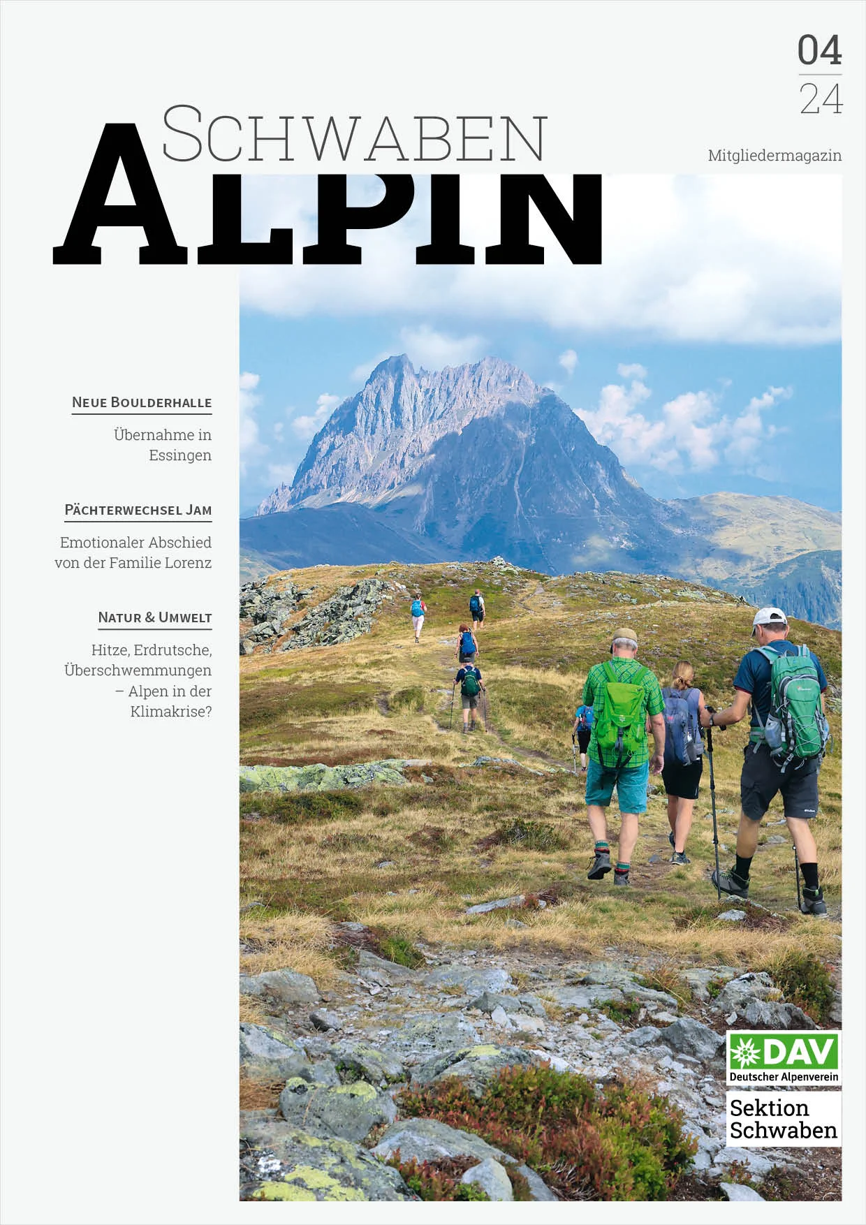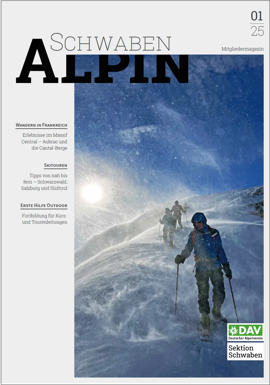 Unser Mitgliedermagazin hält für euch unter anderem Tourenberichte, Infos zu unseren Gruppen, Kurse & Touren, Hütteninfos, Interviews, Tourentipps, Buchempfehlungen bereit. Es ist gratis in eurer Mitgliedschaft enthalten.