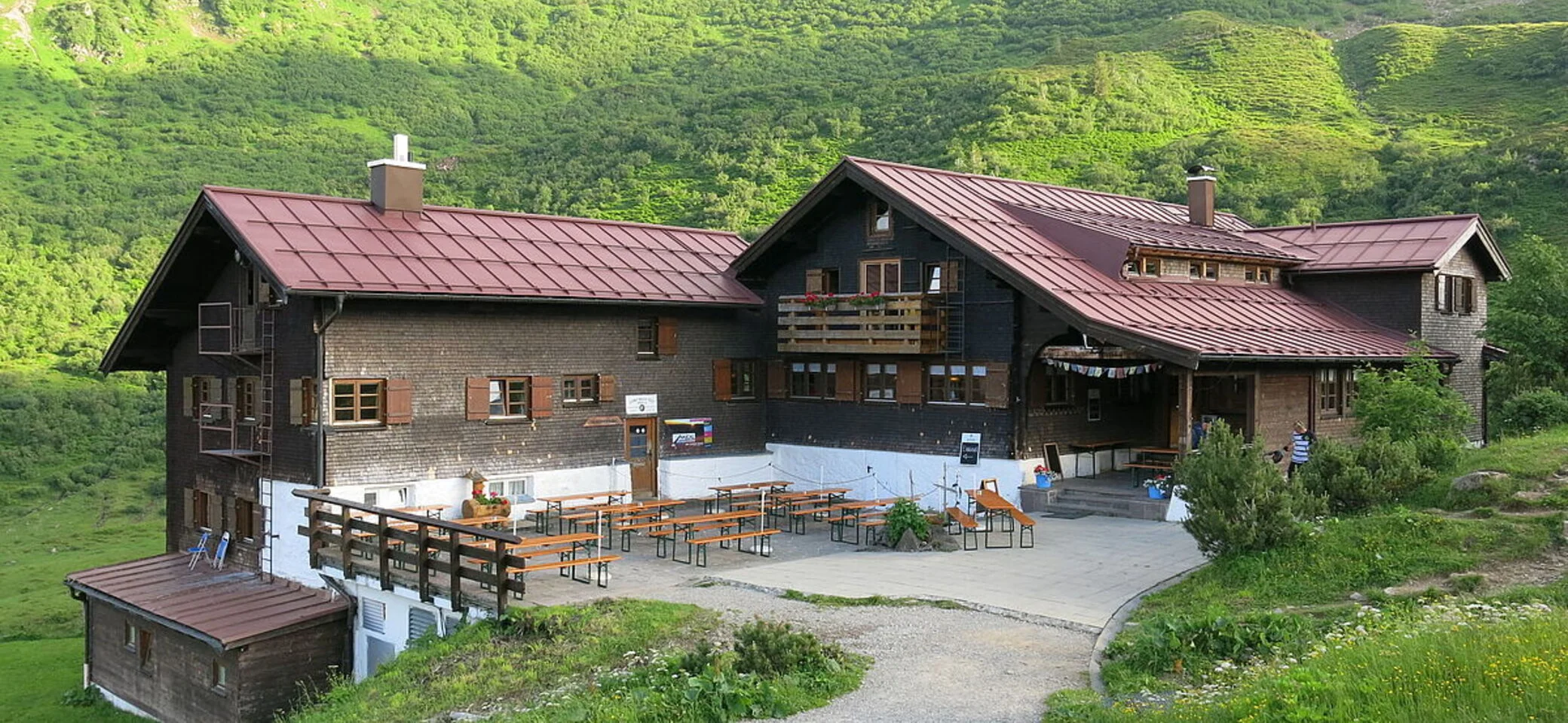 Die Schwarzwasserhütte, hübsch im hintersten Winkel des Tals gelegen. Umgeben von grünen Hügeln mit Pracht-Blick auf den Hohen Ifen (2229 m). Mit seinem markanten Pultdach gilt er als Wahrzeichen des Kleinwalsertals. Von der Hütte führt ein großartiger Wanderweg zu seinem Gipfel. Den Hausberg, das Grünhorn, erklimmt man leicht in zwei Stunden, das Steinmandl mit fantastischer Aussicht in einer. Im Winter sind die hüttennahen Gipfel allesamt wunderbare Ziele für Ski- und Schneeschuhtouren. Und der legendären Schneesicherheit des Schwarzwassertals verdanken wir auch die Hütte. Denn der Bau wurde von der Skiabteilung Schwaben (SAS) initiiert. Das liegt jetzt gut 100 Jahre und Dutzende von Modernisierungsmaßnahmen zurück. Ein Original ist die Schwarzwasserhütte mit ihrem gemütlichen Jägerstüberl trotzdem geblieben.